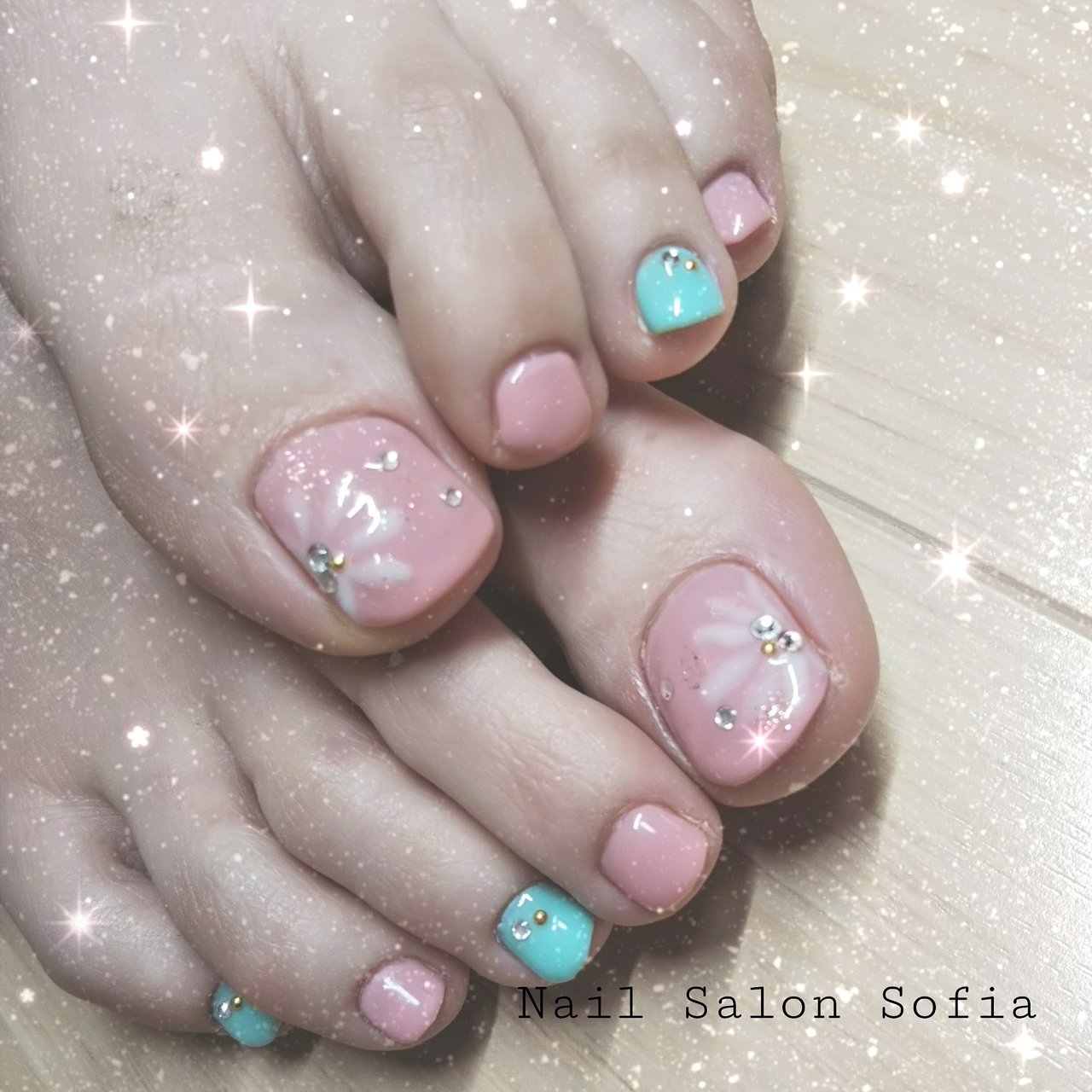 夏 フット フラワー ミディアム ピンク Private Nail Salon Sofiaのネイルデザイン No ネイルブック